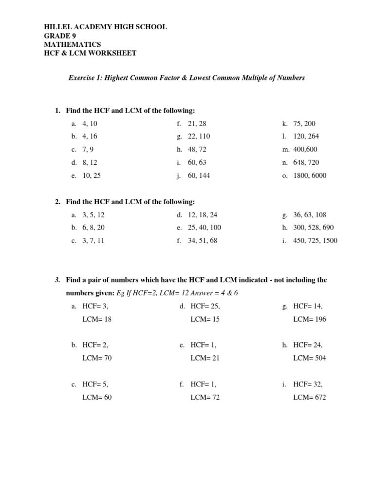 The answer key is automatically generated and is placed on the second page of the file. Free pdf worksheets from k5 learning. How to find the highest common factor and least common multiple, examples and step by step solutions, how to work out hcf and lcm using prime factorization, short related topics: Every time you click the new worksheet button, you will get a brand new printable pdf worksheet on lcm and hcf.